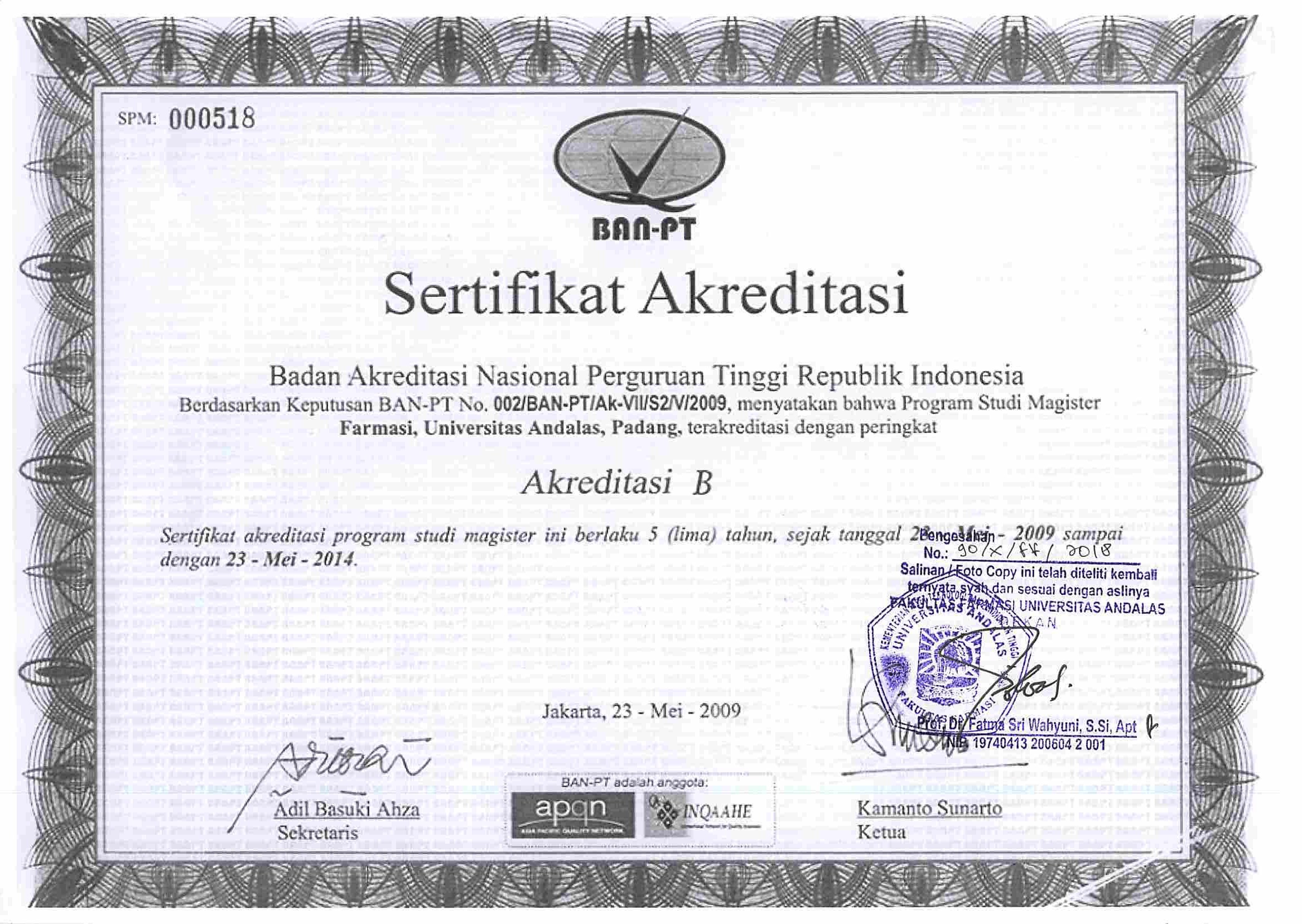 Sertifikat Akreditasi 2009-2014 Magister Farmasi