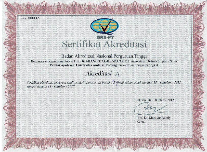 Sertifikat Akreditas 2012-2017 Prodi Apoteker